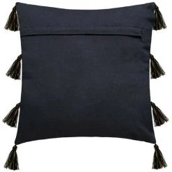 Atmosphera – Housse De Coussin Noir & Or Brillant Avec Pompons 40 X 40 Cm