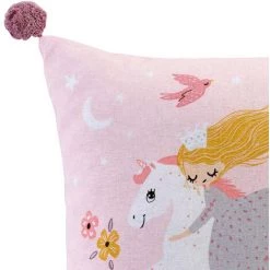 HOMEMAISON Coussin Imprimé Licorne Dans Les Bois Rose 40 X 40 Cm – Rose
