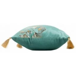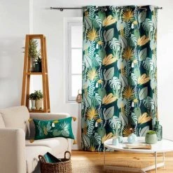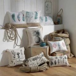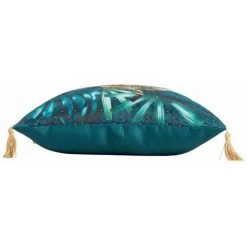 Paris Prix – Coussin à Pompons Imprimé « brazilia » 30x50cm Vert & Jaune