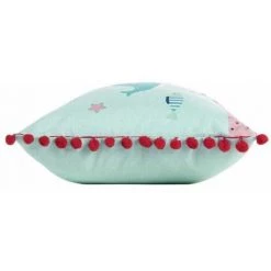 Paris Prix – Coussin à Pompons « petite Sirena » 30x50cm Bleu
