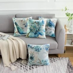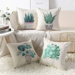 PERLE RARE 4 Morceaux De Housse De Coussin Coton Et Lin 45 X 45 Cm Plantes En Pot