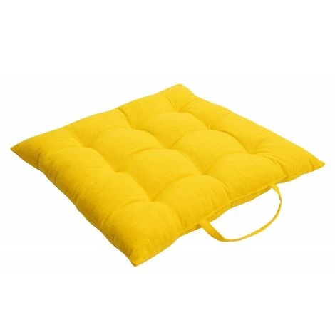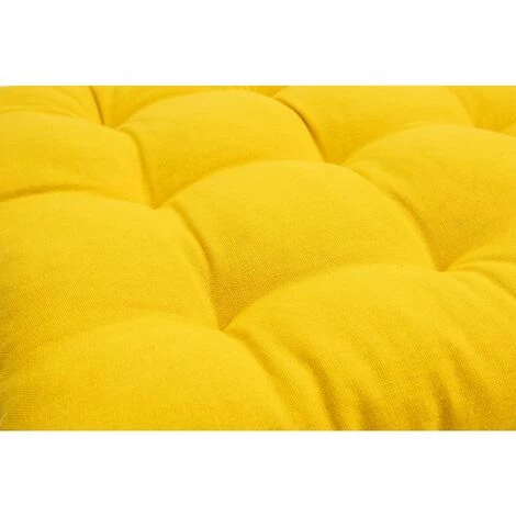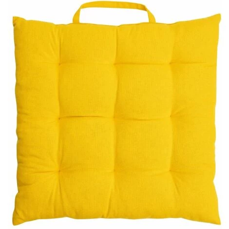 Galette de chaise 100% coton non déhoussable avec poignée unie 9 points de couture jaune. Une galette de chaise 100% coton à la couleur lumineuse avec une épaisseur de 3 cm pour un confort d’assise assuré.