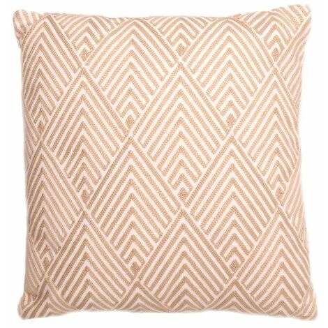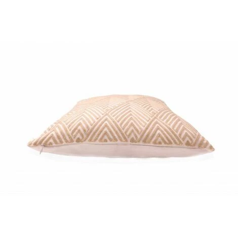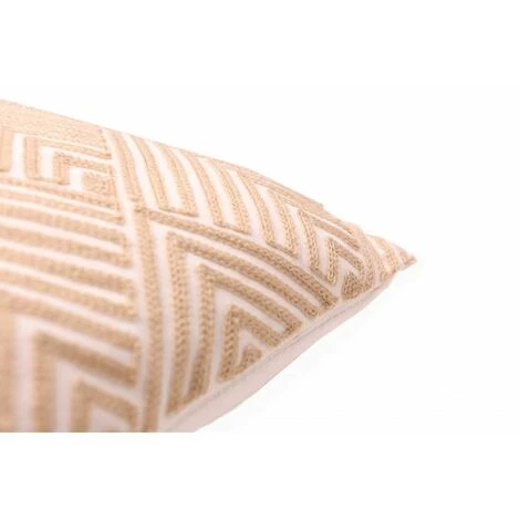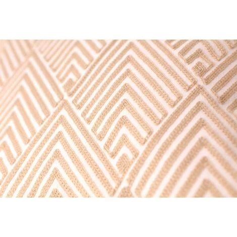 Housse de coussin entièrement brodée 100% coton à motifs chevrons en losanges écru sur une face, uni blanc sur l’autre face.