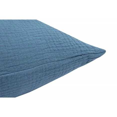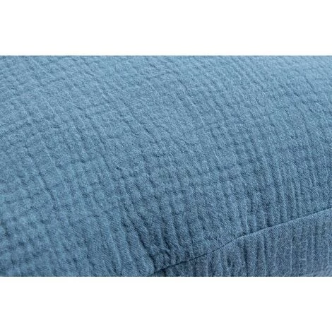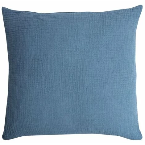 Housse de coussin 100% coton 40 x 40 cm déhoussable effet gaze de coton uni bleu jean. Une housse à la matière et couleurs uniques pour une décoration canapé ou lit moderne chic. Disponible en divers coloris.