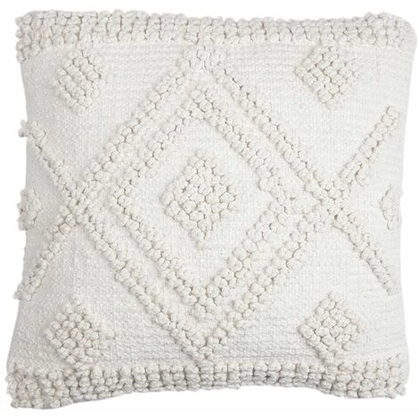 Housse de coussin 100% Coton 40 x 40 cm déhoussable motif losange et effet bouclette en relief en toile épaisse blanc. Cette jolie housse de coussin à la matière naturelle amènera du charme à vos assises. Ses motifs géométriques en relief donneront du dynamisme et du contraste à votre décoration.