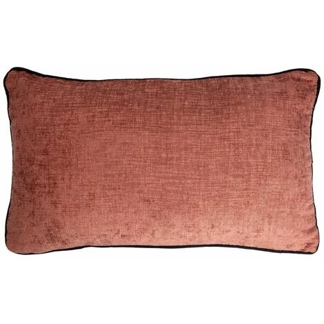 Housse de coussin déhoussable velours chenillé terracotta avec passepoil noir. Une housse décorative soyeuse au toucher. Disponible également en jaune et vert.