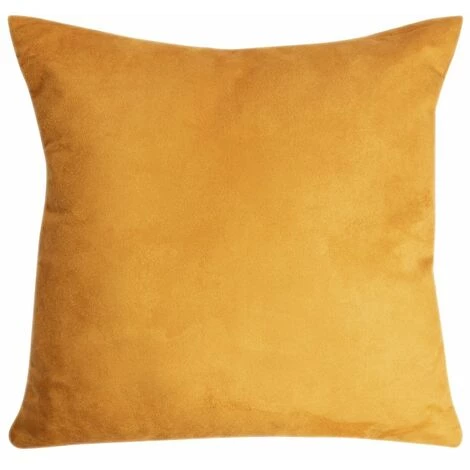 Housse de coussin déhoussable effet alcantara uni jaune. Une housse agréable au toucher et disponible en plusieurs coloris.