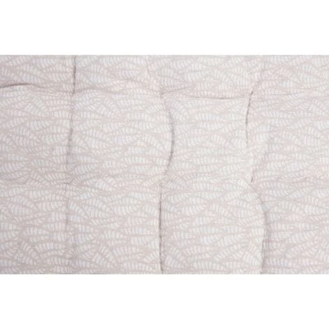 Matelas de sol coussin palette 100% coton 120 x 60 cm et épaisseur 5cm garni non déhoussable avec liens à nouer et surpiqûre motif feuillage dense imprimé coloris écru sur fond blanc. Laissez vous séduire par ce joli matelas de sol, avec son coloris doux, et son charmant motif feuillage, il s’intègrera aisément dans votre décoration.