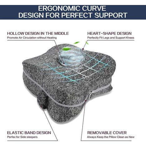 Restez confortable dans n’importe quelle position. Il se forme la nuit. Contrairement aux coussins de genoux traditionnels. il dispose d’un vritable design ergonomique avec ses courbes douces et sa forme en demi-lune pour s’adapter confortablement aux hommes et aux femmes. Sans ceintures de restriction de circulation dangereuses. les contours prcis du coussin s’adaptent la forme naturelle de vos jambes. Ainsi. le coussin en mousse s’adapte votre forme sans se serrer