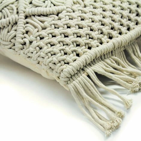 Un beau coussin en coton tressé à l’esprit bohème parfait pour décorer votre cocon.