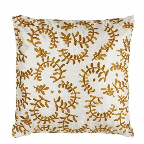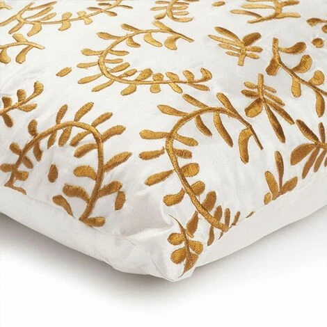 Un superbe coussin blanc avec de jolies broderies ornementales dorées qui apportera une touche d’élégance à votre intérieur.