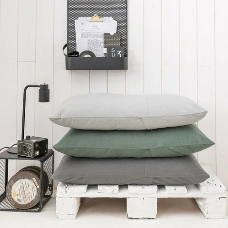 Caractéristiques du coussin Hygge 45×75 cm coton lavé kaki :