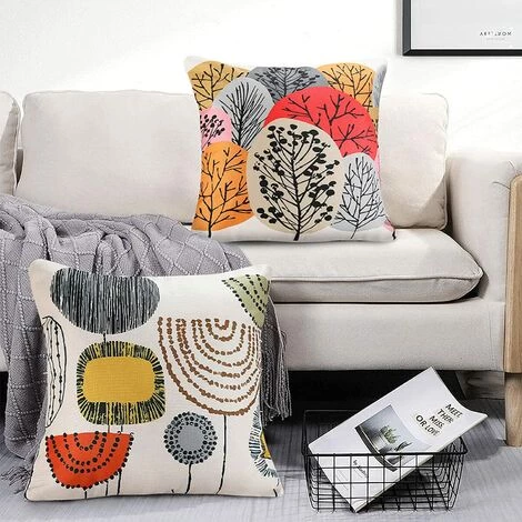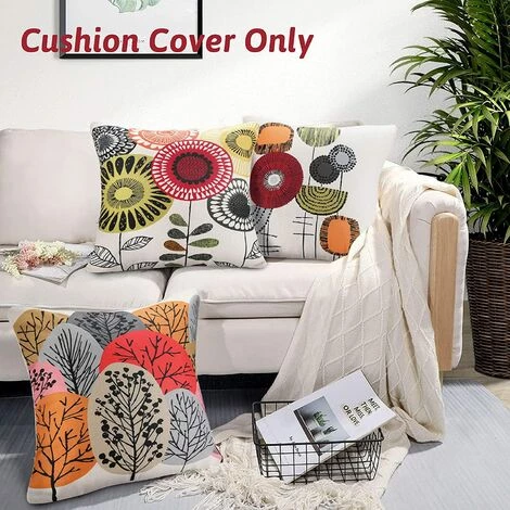 Housses de Coussin à Fleurs Abstraites : Notre housse de coussin décorative est faite de fleurs de dessins animés abstraits et de motifs d’arbres, peut non seulement apporter de la fra?cheur à votre salon, mais également idéale pour les chaises de patio extérieures pour correspondre à vos décors. SEULEMENT imprimé sur un c?té.