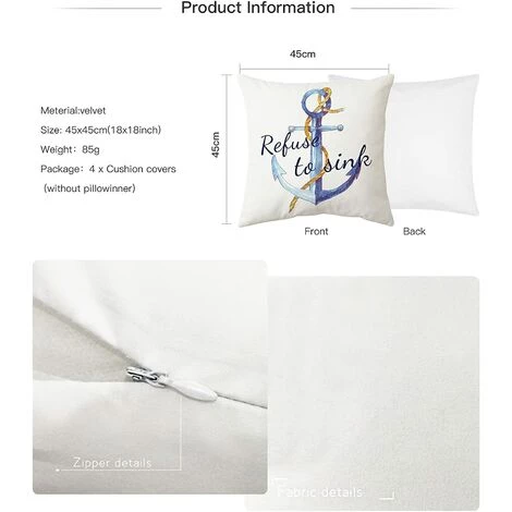 Soyez le premier à laisser votre avis sur “YIENJAOY Lot De 4 Housse De Coussin 45x45cm, Moderne Taies D’oreiller Décoratif Canapé Coussin Canape Pour Chambre, Canapé, Chaise, Lit,Jardin (Maison De La Mer-Velours)” Annuler la réponse