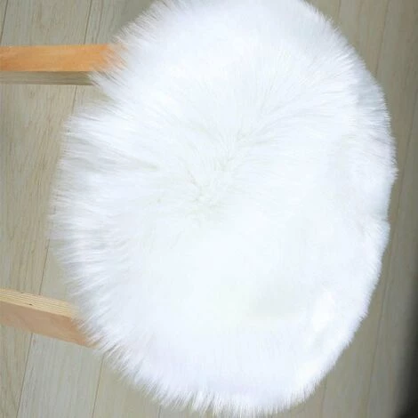 Le tapis en fausse fourrure blanc taille parfaite 15,7 « x15,7 » rond avec un pli de fourrure de 2,5 pouces pour coussin de siège de chaise ou décoration de salon de chambre à coucher de luxe haut de gamme