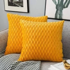 Deconovo Lot De 2 Housse De Coussin En Velours Taie D’oreiller, 51×51 Cm, Jaune D’or