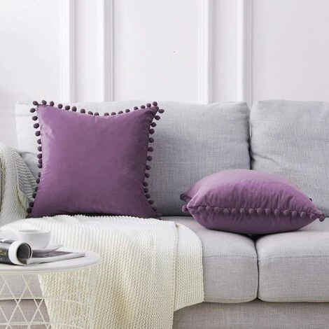 - DIMENSION : Comprend 2 housse de coussin 50x50cm(20x20pouce) avec pompom, coussin violet et oreiller inséré non-inclus.